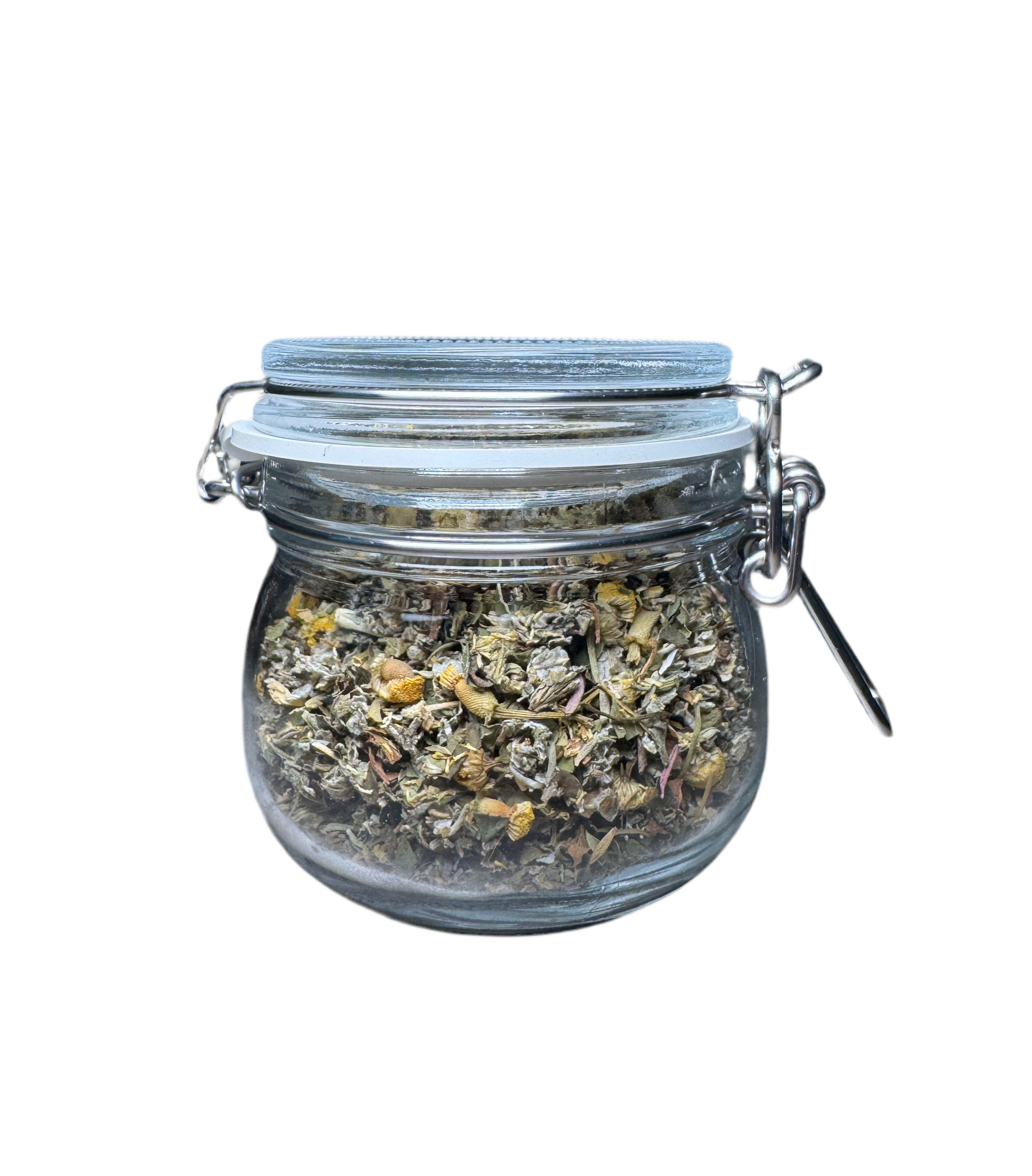 Ingredients: organic chamomile, organic red raspberry, organic peppermint, and organic thyme.